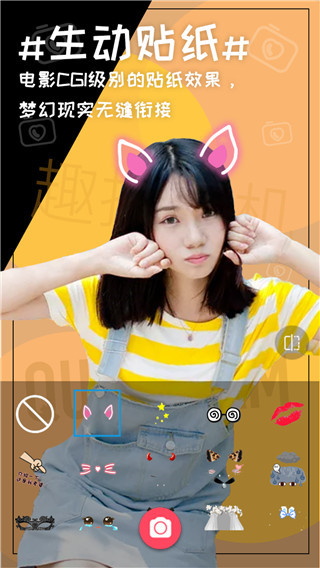 这款软件拥有强大的美颜功能,包括美白、磨皮、瘦脸、瘦身等效果,让你无需后期PS就能获得完美的照片。此外,趣拍相机还提供了海量特效、滤镜和贴纸,让你的照片更加生动有趣。无论是可爱的卡通形象、时尚的文字标签,还是独特的动态贴纸,都能为你的照片增添无限创意。