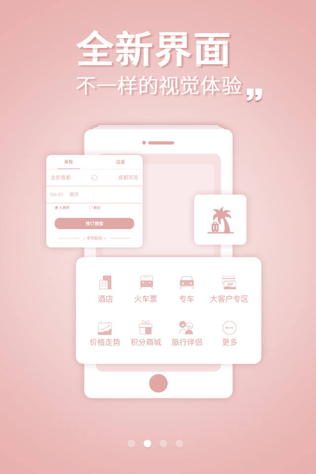 对app界面进行了全面改版,首页采用全新风格展示航班信息,购票流程更加清晰直观,操作体验大幅提升。