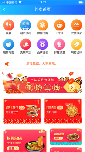 幸福我家app是一个专业的同城生活服务平台,采用创新的O2O服务模式,为用户提供全方位的生活服务解决方案。平台涵盖了外卖配送、团购优惠、生鲜采购、鲜花预订、日用百货、母婴用品等各类商品和服务。特别值得一提的是,平台还提供月嫂保姆等专业家政服务,以及各类便民服务,真正实现了对用户日常生活需求的全面覆盖。