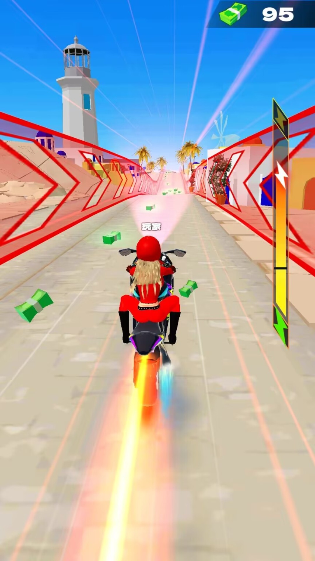 让摩托车走得更快,玩家需要依靠后轮来驱动,后轮驱动,抓地力更足。长按加速键,然后适当的向后倾斜即可。此外,合理利用氮气加速和弯道漂移技巧,可以大幅提升你的速度,甩开对手。