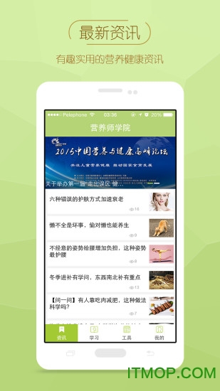 学院app是一款专为营养师和健康爱好者打造的专业学习平台。这款软件整合了全球前沿的营养学知识和饮食方案,为用户提供系统化的学习路径。通过丰富的在线视频课程、模拟考试题库和个性化学习计划,帮助用户从零基础成长为专业营养师。软件还特别设计了智能学习跟踪系统,可根据用户的学习进度推荐适合的内容,让知识获取更加高效便捷。无论您是准备考证的在读学员,还是希望提升专业能力的从业者,都能在这里找到适合自己的学习资源。