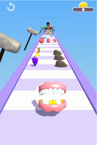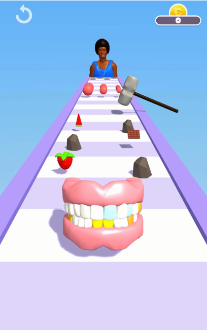 《义齿充填》是一款充满创意的趣味跑酷游戏,玩家将扮演一个活力十足的牙床在赛道上疾驰。游戏采用清新明亮的卡通画风,你需要灵活操控牙床左右移动,收集沿途散落的各类牙齿。从洁白的健康牙齿到闪耀的黄金牙齿,每种牙齿都能为你的牙床增添独特魅力。但要小心避开碎石等障碍物,它们会破坏你辛苦收集的牙齿。通过补充水果等健康食物还能获得特殊能力,最终目标是将完美的牙齿组合安装到等待治疗的患者口中。