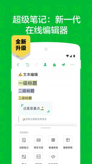 高效率纪录会议记录、工作规划、学习心得,支持语音转文字和手写识别功能,让记录更加轻松便捷。列采购清单、待办事宜、2021年购物清单,智能提醒功能确保重要事项不会被遗漏。一键个人收藏精彩纷呈微信推文、新浪微博及网页页面,自动保存原文并去除广告干扰。集中化储存PDF/Office/图片/音频/网页页面等普遍文件格式,强大的OCR技术可识别图片中的文字内容。
