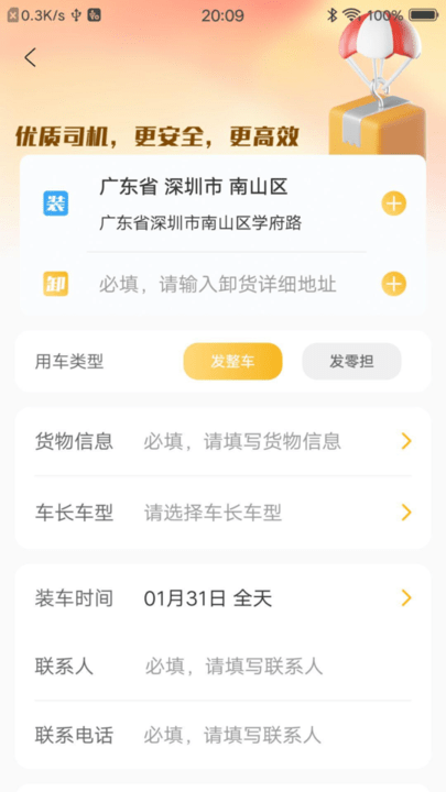 配货宝货主版通过创新的金融服务,有效提高货主的资金周转率,并为优质企业提供专业的合同保理服务。用户可以自由预约运输时间,根据自身需求灵活安排发货计划。先进的车辆定位系统让货主可以实时掌握运输车辆的位置信息,确保货物准时送达指定地点。平台还提供详细的运输数据统计和分析功能,帮助货主优化物流管理决策。