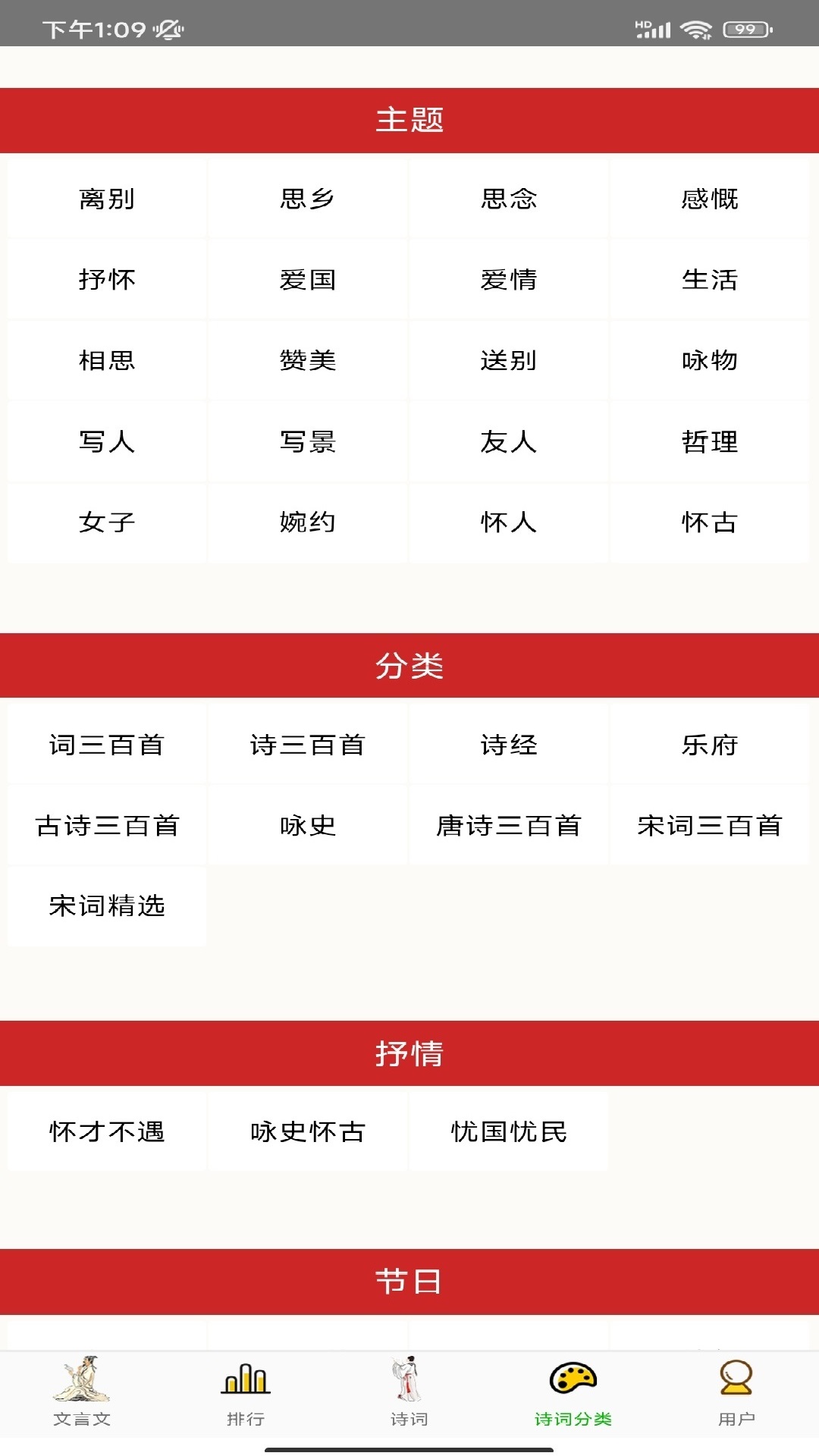 草堂是一款专注于古诗词学习的优质应用,汇聚了中华五千年文化精髓。从先秦诗经到唐宋诗词,再到明清佳作,这里收录了上万首经典作品。软件创新性地融合了文本阅读与专业朗读功能,让用户在抑扬顿挫的诵读中感受诗词韵律,在详尽的注释解析中领悟深层意境。无论是初学者还是诗词爱好者,都能在这里找到适合自己的学习方式,开启一场穿越时空的文化之旅。