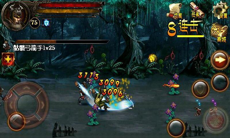 游戏采用直观的虚拟按键操作方式,玩家可以通过虚拟方向键控制主角移动,双击方向键还能触发帅气的冲刺动作。攻击按钮让玩家可以轻松发动基础攻击,而通过不同的按键组合还能施展出各种华丽的连招。
