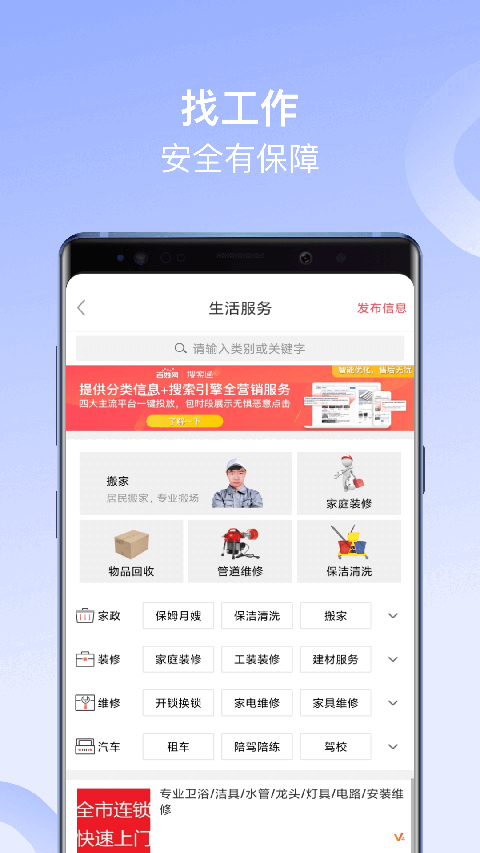 生活:家政/维修/装修/搬家。服务人员持证上岗,明码标价。