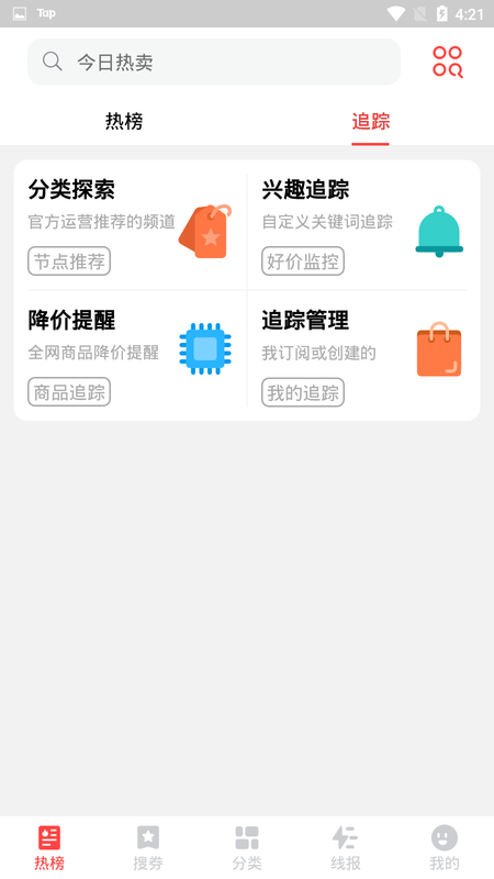 自定义兴趣追踪及全网商品降价提醒(自定义追踪关键词,价格区间,折扣等)。支持设置心仪商品的价格提醒,降价第一时间通知您。