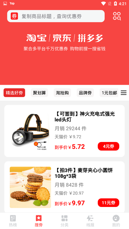 聚合各电商平台/天猫//等热卖榜单(附带隐藏优惠券)。实时同步各大平台销售排行榜,让您轻松掌握爆款商品动态。