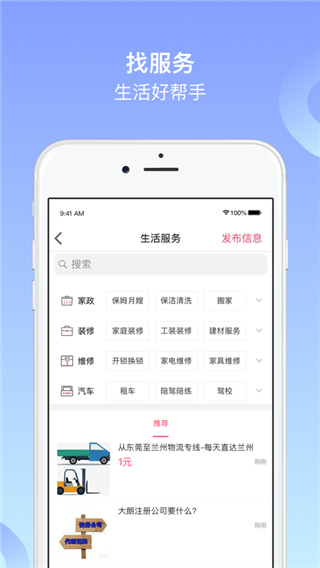 附近信息推荐功能利用智能算法为您精准推送周边优质资源,让您发现身边的更多可能。平台拥有海量分类信息,涵盖生活的方方面面,总能找到您所需的内容。创新的自动分类技术让信息发布变得异常简单,10秒即可完成闪电发布。收藏同步功能让您不错过任何心仪的信息,所有收藏内容都会在云端自动同步。