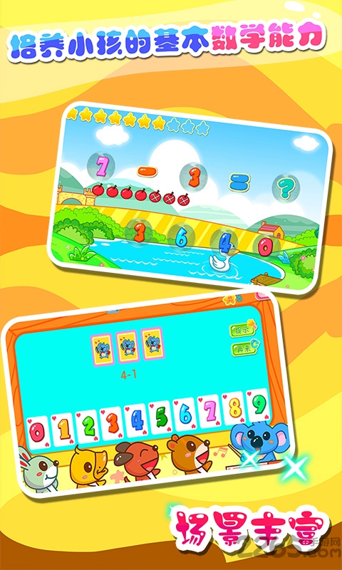 加减乘除:数学启蒙模块将基础运算融入趣味游戏,通过生动的图示和互动反馈,让孩子轻松掌握10以内的加减法概念。