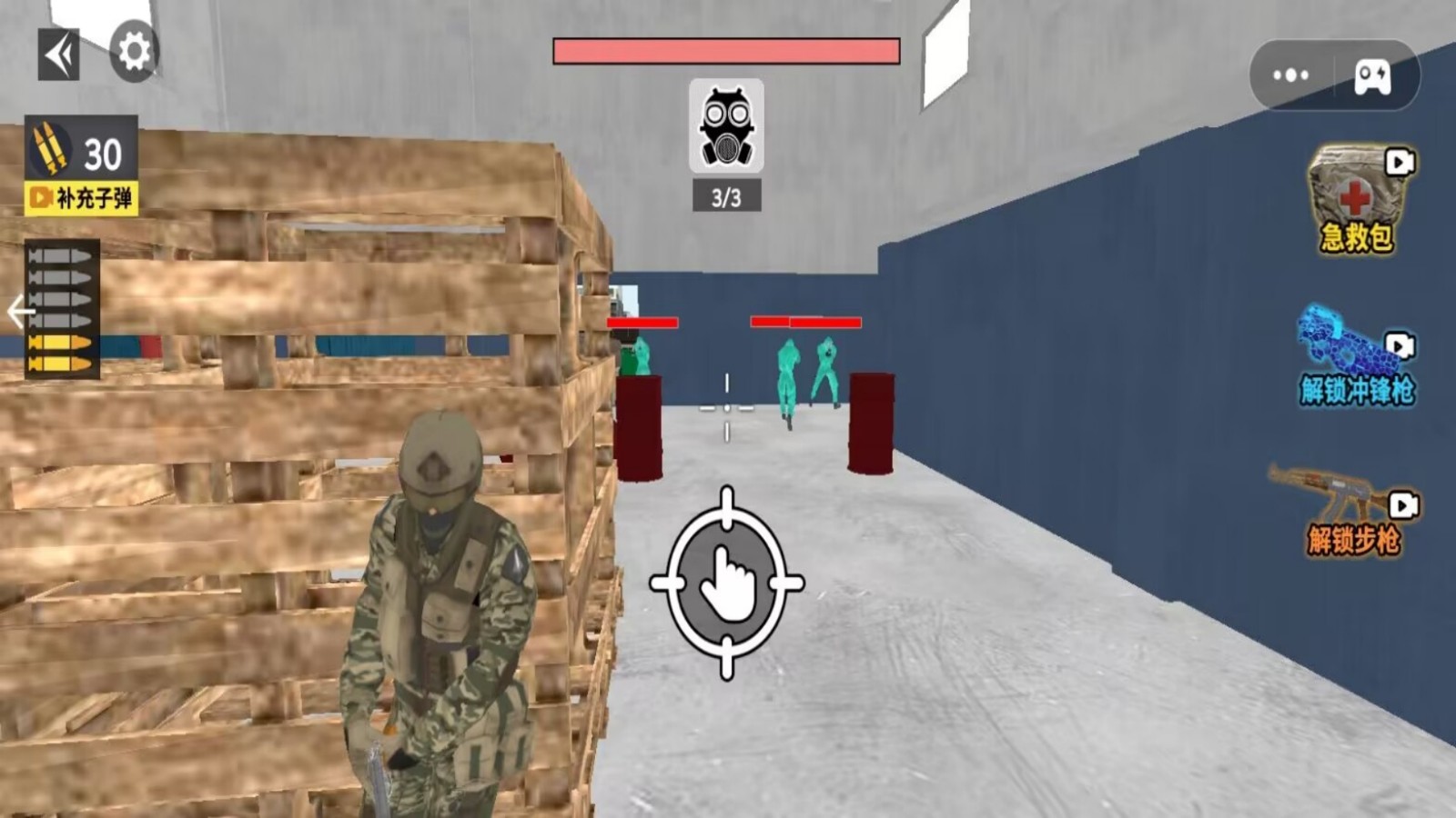 打开游戏后,玩家需通过虚拟摇杆控制特种兵移动,射击键默认自动装弹,但长按可触发精准瞄准模式提升爆头率。作战时注意观察左上角雷达,红点标记会动态显示敌人方位,优先消灭携带重火力的目标。