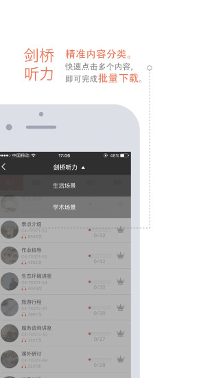 真实考试模拟:提供与托福听力考试完全一致的题型和场景,帮助用户提前适应考试节奏。海量题库资源:涵盖历年真题及高质量模拟题,确保练习材料的权威性和实用性。逐句精听功能:支持逐句播放和重复收听,方便用户重点攻克难点句子。变速播放:可调整音频速度,适应不同听力水平用户的需求。智能错题本:自动记录用户的错题,便于针对性复习。离线学习:支持下载听力材料,随时随地练习,不受网络限制。此外,软件还特别设计了场景化学习模式,通过模拟真实校园生活场景,让用户在沉浸式环境中自然提升听力理解能力。