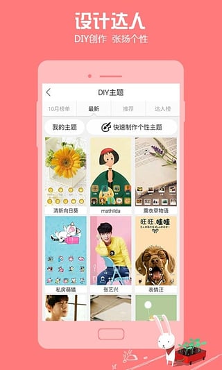 【个性主题】更有DIY专区让您轻松打造个性专属主题,品质生活,从此开始。您可以自由调整壁纸元素、添加文字和特效,甚至可以将多张照片拼接成独一无二的拼图壁纸。让您的手机桌面成为展现个性的窗口。