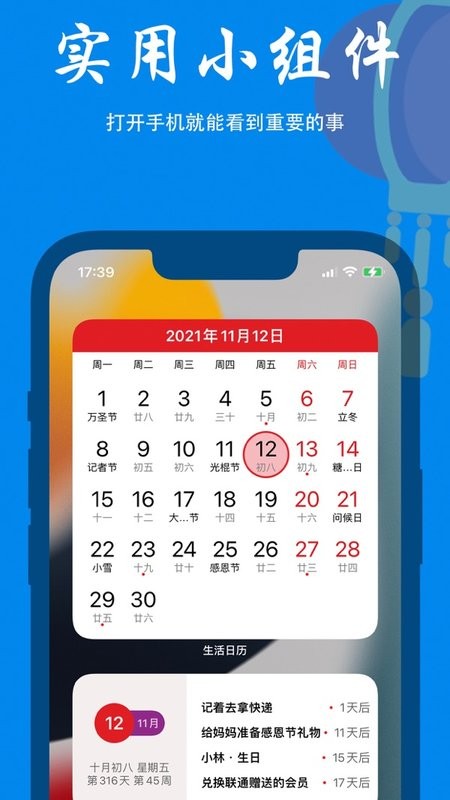生活日历不仅提供公历、农历、节日、节气、黄历等传统日历功能,还整合了法定节假日查询和实时天气服务,全方位满足用户需求。其智能语音提醒功能堪称一绝,只需对手机说出"明天下午3点开会",系统即可自动识别并设置提醒,彻底告别繁琐的手动操作。此外,无论是公历生日还是农历生日,生活日历都能精准记录并每年准时提醒,确保用户不会错过任何重要时刻。凭借其强大的功能和便捷的操作体验,生活日历已成为智能手机用户不可或缺的生活实用工具,深受广大用户喜爱。