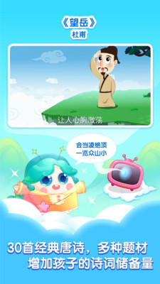小伴龙学唐诗app设计了听、读、写、析立体式唐诗学习模式,通过多种感官刺激帮助孩子更好地记忆和理解诗词。软件界面设计精美,色彩鲜艳,特别适合低龄儿童使用。
