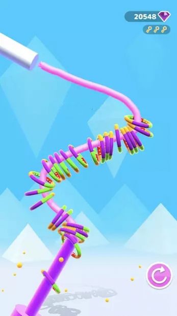 套线圈的挑战游戏玩法,诸多任务,尽情挑战,很精彩;创新性的物理模拟系统让线圈运动轨迹更真实自然,碰撞反馈细腻精准。欢比的游戏体验,很多玩法,轻松有趣,自由闯关冒险;每周更新主题关卡和限时挑战活动,保持游戏新鲜感。轻松上手的简单操作方式,灵活操控绚丽的线,闯关;支持自定义线圈皮肤和场景背景,打造个性化游戏空间。