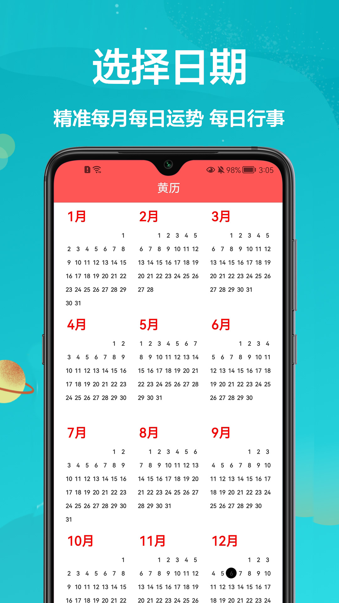 黄历功能专业实用,为用户提供择吉避凶的参考建议,无论是婚丧嫁娶还是开业动土,都能找到合适的良辰吉日。万年历功能集成了公历农历转换、节日标注、记事备忘等多项服务,满足不同用户的需求。专业的择日系统基于传统算法,结合现代数据技术,确保查询结果的准确性,让用户轻松选择最佳办事时机。