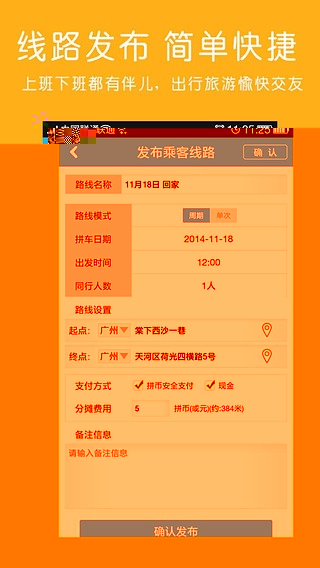 发布路线奖励:成功发布拼车路线可立即获得3元彩金,更有机会参与500万大奖抽奖活动。