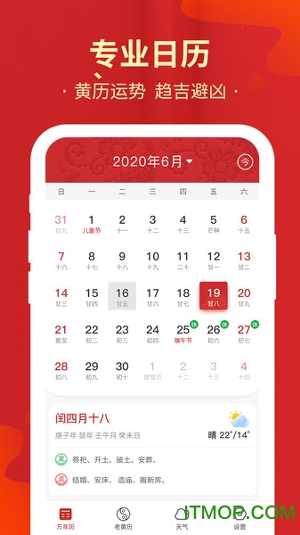 作为一款专为中国人设计的万年历应用,它不仅具备基础的日历功能,还整合了记事提醒、天气查询等实用功能,让您的生活更加井然有序。简洁大方的中国风界面设计,既美观又实用,完美诠释了传统与现代的融合。