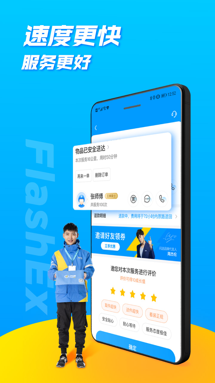 闪送,一对一急送,拒绝拼单!着急送东西,用闪送!闪送,致力于同城快递行业,目前已有222个城市开通服务,100万+闪送员收送物品,1亿+用户使用闪送寄送物品。闪送采用严格的闪送员审核机制和服务标准,确保配送品质。平台全年无休,24小时在线服务,随时随地满足用户的紧急配送需求。无论是商务文件、个人物品还是特殊商品,闪送都能提供专业可靠的配送解决方案。