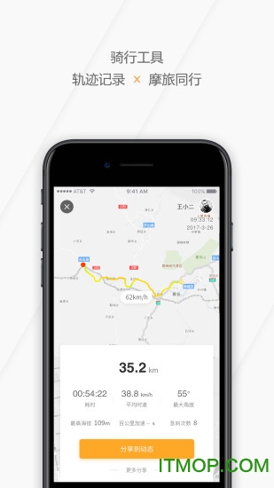 轨迹记录,轻松查看自己的骑行轨迹,邀请摩友一起同行。内置专业GPS记录功能,可以精确记录骑行路线、速度、里程等数据,还能生成精美的骑行报告。
