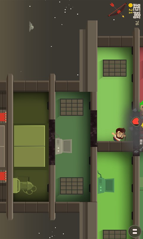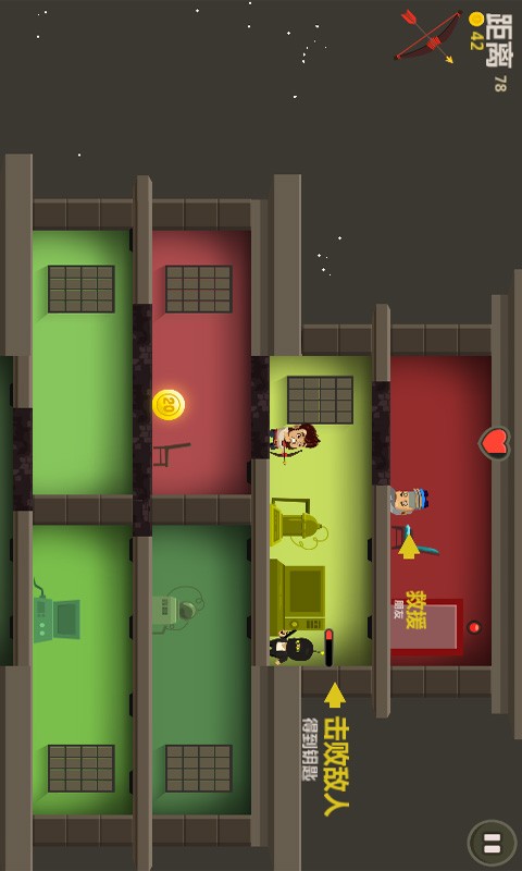 每关都设有隐藏钥匙,击败特定精英敌人后即可获得。钥匙是通往顶楼激光控制室的必备物品,建议优先解决携带钥匙的敌人。如果提前获得钥匙,应尽快前往顶楼,避免在底层消耗过多生命值。某些关卡还设有隐藏宝箱,可能开出强化道具或额外钥匙。