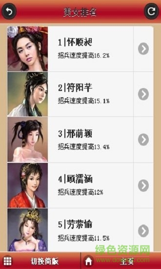 进入后厢房,任命一名美女担任某资源的官员,可以提高资源产量,她的属性越高产量也就越高。建议优先培养内政型美女;