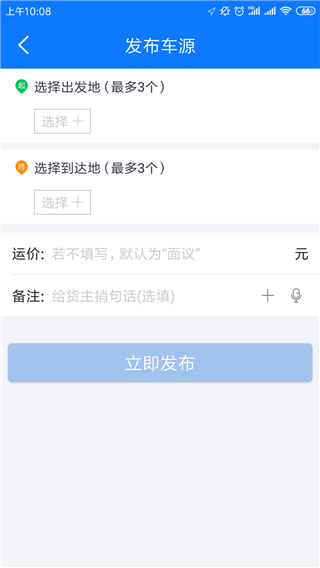 然后进入软件首页,为用户提供了找货源,一键配货,发布车源,管理车源等快捷入口,界面设计简洁明了,操作流程一目了然。