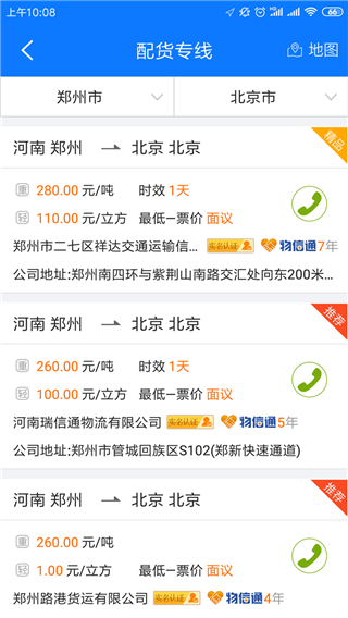 地图查找附近的货源、配货信息部、物流园、停车场、站,支持实时定位和路线规划,让车主快速找到周边物流资源,提高运输效率。