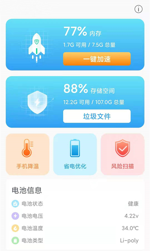 一键清理助手作为一款完全免费的手机优化工具,不仅具备强大的清理加速功能,还能智能管理手机资源。通过强力加速引擎,可显著提升手机运行速度;一键清理功能则能快速释放存储空间,解决空间不足的困扰。此外,软件还配备了智能省电模式,在提升手机性能的同时延长电池续航时间,让您享受更持久的使用体验。通过专业的手机优化算法,它能有效释放系统内存,恢复设备运行速度,优化电池使用效率,帮助用户彻底告别卡顿烦恼。
