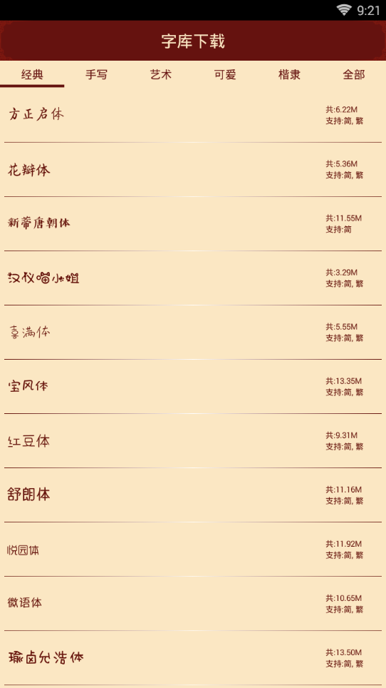 本软件可适配现有市场上几乎所有型号手机,包括主流品牌和最新机型。字库采用云服务器存储,可迅速下载,即使是大容量字体包也能在30秒内完成下载。备份、还原本机默认字体功能让您随时可以恢复原厂设置,安全无忧。可预览和替换字体功能让您在选择时就能看到实际效果。一键下载,随意更换。方便快捷的操作流程让美化变得如此简单!此外,软件还会定期更新字体库,确保您总能找到最新潮的字体资源。