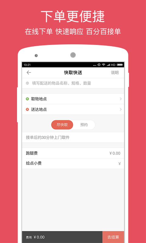 快速取送:提供同城点对点一小时极速配送服务,支持随叫随送,满足您的紧急需求。我们的智能路线规划系统能自动计算最优配送路径,确保物品安全快速送达。