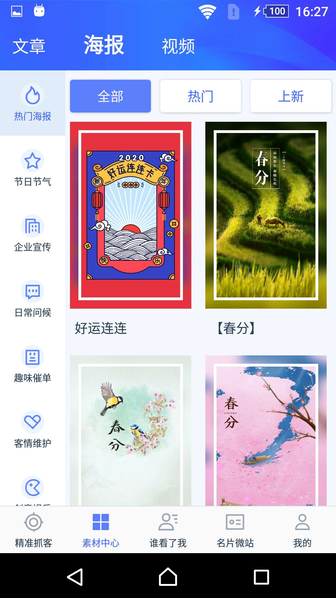 对于销售人员来说,光依靠线下的吆喝是不够的,你还需要一些宣传手段,这里会为大家提供齐全的宣传素材,不管你是需要海报,还是文章宣传都能在这里发现想要的,想用的快来下载销冠神器吧。
