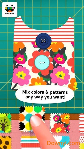 在游戏中,孩子们可以尽情发挥创意,为四个不同风格的角色设计制作服装。从基础款式开始,通过调整衣边、改变袖子长度等方式进行个性化定制。游戏提供了丰富的设计元素,包括24种不同的织物样式和多种颜色搭配。最特别的是内置的相机功能,可以让孩子们将现实生活中的物品转化为独特的服装图案。完成服装设计后,还能添加各种配饰,如帽子、鞋子等,最后还能选择自己喜欢的背景拍照留念。