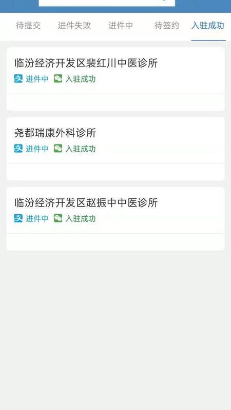 -推广员填写商户资料进行进件,区分待提交、进件中、已驳回、待签约、入住成功五种进件状态。