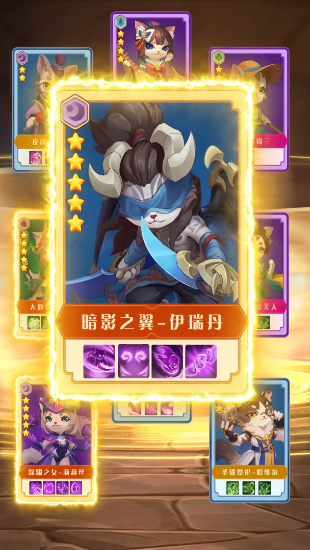 之章开启的是比较高级一些的卡牌,使用唤猫棒进行召唤,建议集齐10连抽才开启。游戏内会定期举办召唤活动,期间5星出货率会大幅提升。