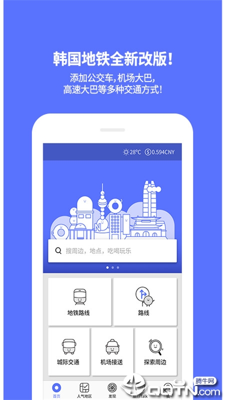 韩国旅游必备,韩国ing推出全新中文版韩国地铁路线指南应用软件!完全征服复杂的首尔地铁,轻轻松松掌握首尔地铁动向!同时韩国地铁软件还提供全方位韩国地铁路线及周边旅游、美食、购物、优惠券等信息,让您的韩国旅游畅通无忧!软件特别设计了智能路线规划功能,可根据您的需求推荐最短距离或最少换乘方案,并实时显示各站时刻表。到达提醒功能让您不会错过目的地,交通费用计算帮助您合理规划预算。现在开始,和韩国ing一起开始一段聪明的韩国旅行吧!