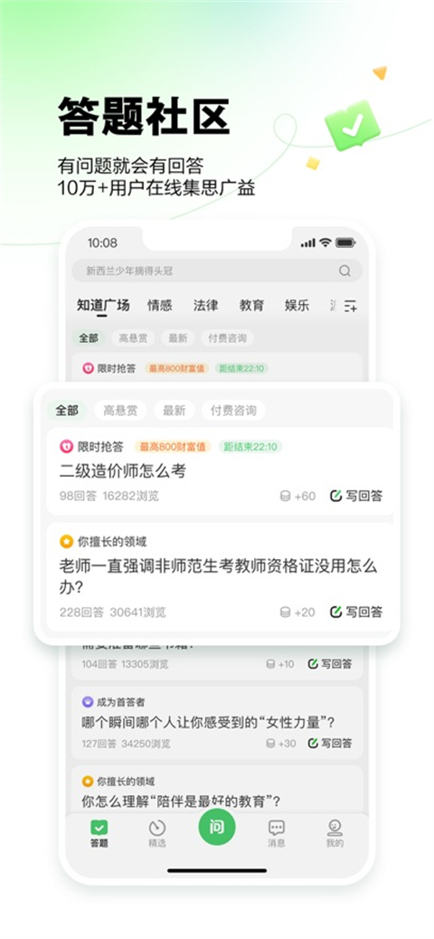 与知识互搏竟然这么有趣~你可以在发现频道页观看最高质的热点问答<101°>,也可以在<真相问答机>挖掘那些真真假假的奇葩常识问题,在颇有争议的话题里投出主观的一票。新增"知识挑战赛"功能,每周推出不同主题的趣味问答,答对题目还能赢取积分奖励,让学习变得更有成就感。