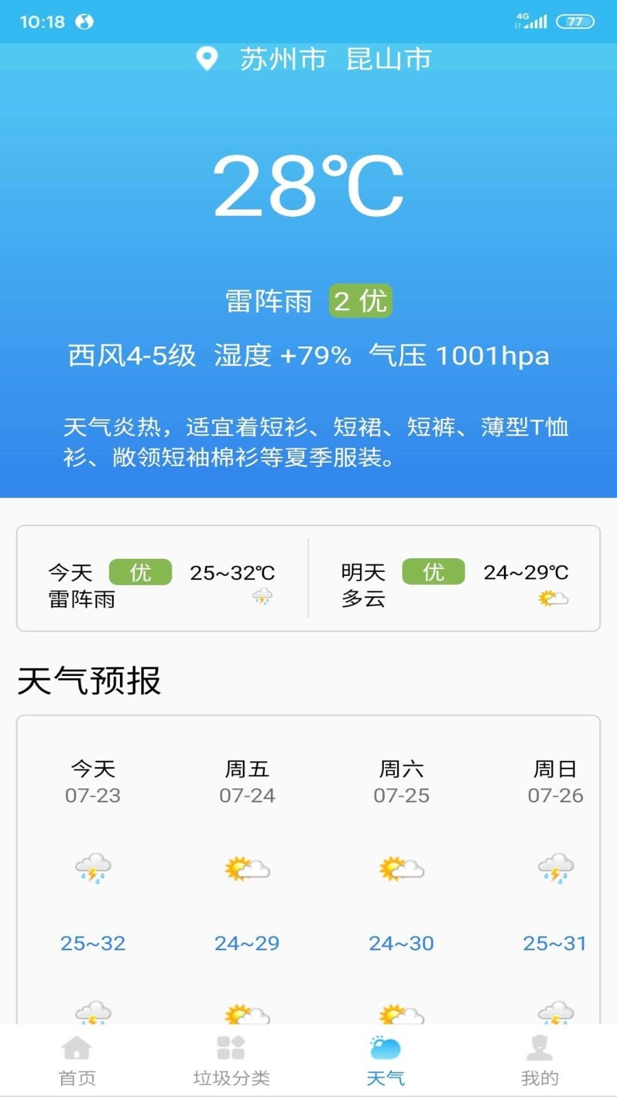自由行线路定制功能让您可以根据个人喜好规划专属行程,同时还能在线欣赏景区的高清图片,提前感受目的地魅力。精准的天气预报服务提供24小时逐小时天气变化,以及未来一周的天气预测,并附带实用的生活建议。
