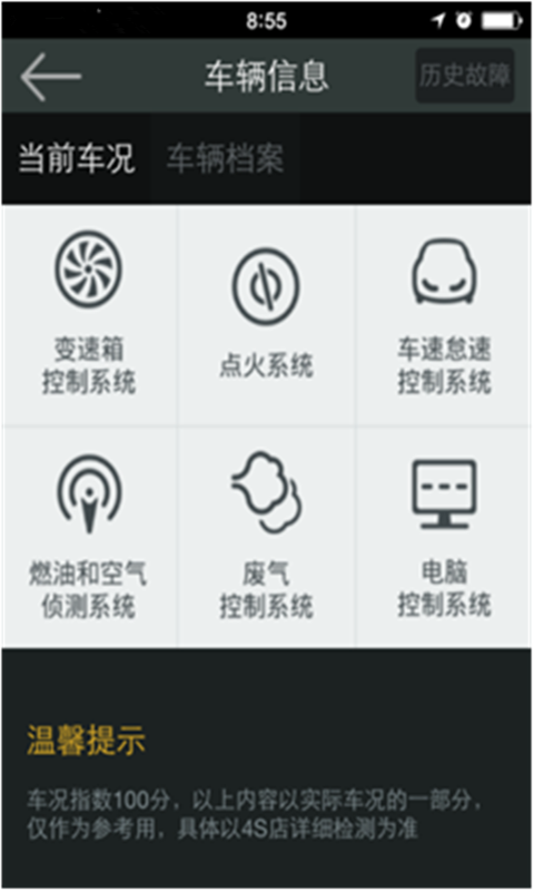 智能车况评分系统会对车辆进行百分制评估,当分数低于90分时会自动推送检测建议,并智能匹配附近最适合的维修服务点,确保爱车始终保持最佳状态。