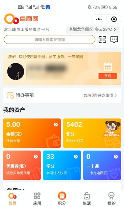 作为富士康集团重点打造的数字化服务平台,富圈圈整合了员工工作生活的方方面面。平台以"员工服务,一应聚圈"为核心理念,构建了涵盖衣食住行、教育培训、休闲娱乐等九大板块的完整服务体系。通过大数据分析和人工智能技术,平台能够精准把握员工需求,提供个性化的服务推荐。同时,平台还接入了集团内部办公系统,实现工作与生活的无缝衔接,真正打造了一个全方位的数字化员工服务生态圈。