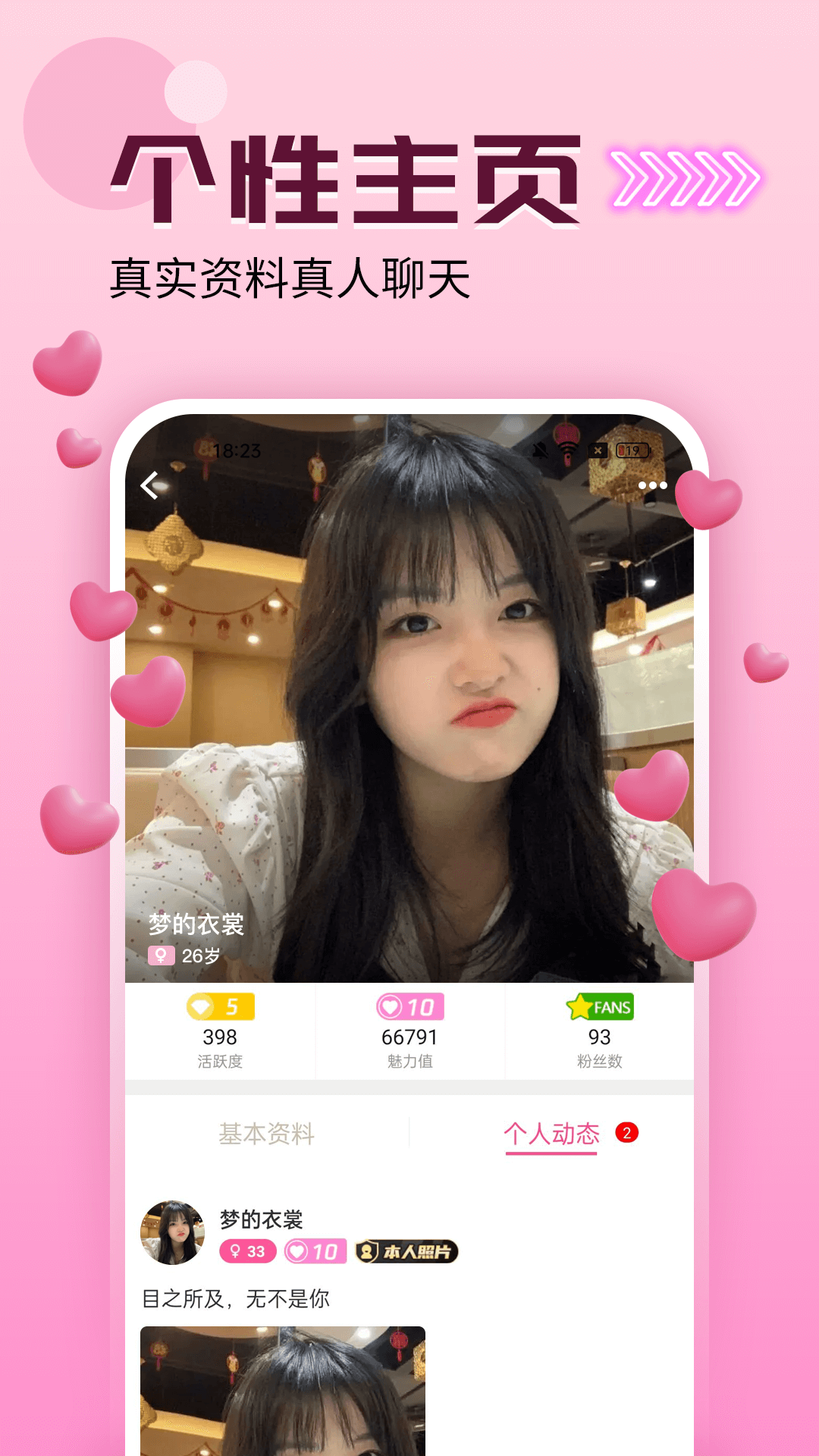 【智能匹配】约会,自由选择线上高颜值妹子,线上交友聊天,带你进入恋爱空间,系统每日更新上万活跃用户资料,保证匹配资源新鲜度。