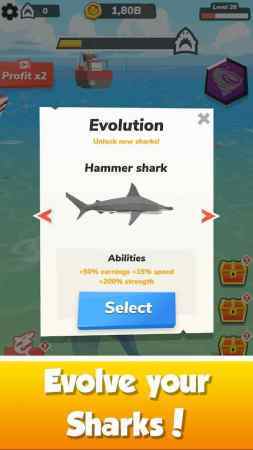 要想吃饱,还得靠自己的力量。如果你总是比别人落后一步,那你就会很危险,而且会死。这种适者生存的游戏机制,让每一场捕猎都充满紧张刺激感。潜行技能非常好用,不知不觉中被猎物吞噬,给你一条致富的冒险之路。玩家可以巧妙利用环境掩护,悄无声息地接近目标,体验一把海洋猎手的快感。是一款非常新颖的模拟经营游戏。在游戏中,你站在海洋生物食物链的顶端,化身鲨鱼。这种独特的角色设定,让玩家能够体验到不同于传统游戏的成就感。