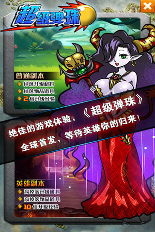 《超级弹珠》是国内首款引进自日本的弹珠类手游,玩法创新!玩家操控自己的弹珠英雄弹击敌人,触发各种炫丽技能,通过不断收集宝物、经验积累提升英雄能力;而且游戏画面精美,ui简洁明了,浓浓的日游风格,喜欢的你千万不要错过该款游戏哦,多角色多属性的策略养成,实时多人联机的协力作战。游戏还特别设计了动态天气系统和昼夜变化,让战斗场景更具沉浸感。每个英雄都拥有独特的背景故事和成长路线,玩家可以自由搭配阵容应对不同挑战。