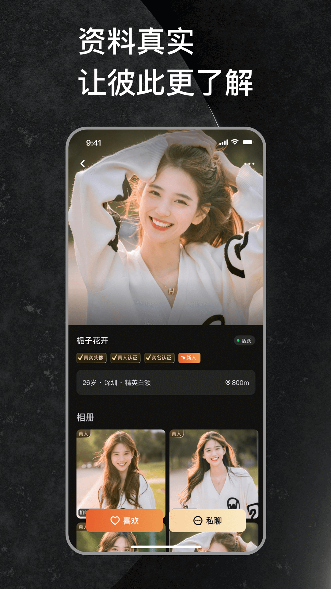 平台汇聚了海量经过真人认证的用户,覆盖各种兴趣爱好和性格类型,总有一款适合你。系统会根据你的偏好智能推荐匹配对象,让你在茫茫人海中快速找到心仪的另一半。无论是阳光开朗的运动达人,还是温柔体贴的文艺青年,都能在这里遇见。每天都有新用户加入,让你的选择更加丰富多样。