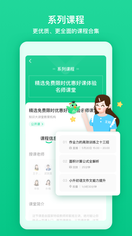 -直播、胶囊、系列课程界面全新升级,更清新更有爱。优化了课程目录结构,查找课程更加便捷。