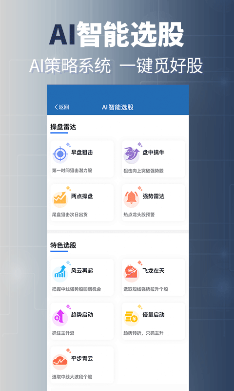 选股训练:一只好的股票可以带来超额收益。相同的时间内,有的股票飙升,有的股票滞涨,选股的重要性不言而喻。双盲测试助您练就卓越盘感的同时,选股训练助您练就超群的选股技巧。多股同列,只选更强。通过对比分析不同股票的走势特征,培养敏锐的市场嗅觉。