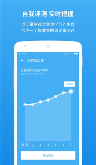 专业的词汇量评估系统,可分别测试阅读词汇量和听力词汇量,精准定位学习水平。