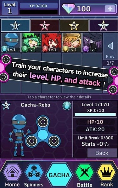 收集和Gacha100个不同的动漫人物和烦躁微调!每个角色都拥有独特的技能树和成长路线,让收集更具策略性。